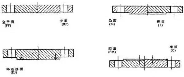 平麵(FF)、突麵(RF)、凹凸麵(MFM)、榫槽麵(TG)、環連接麵(RJ)