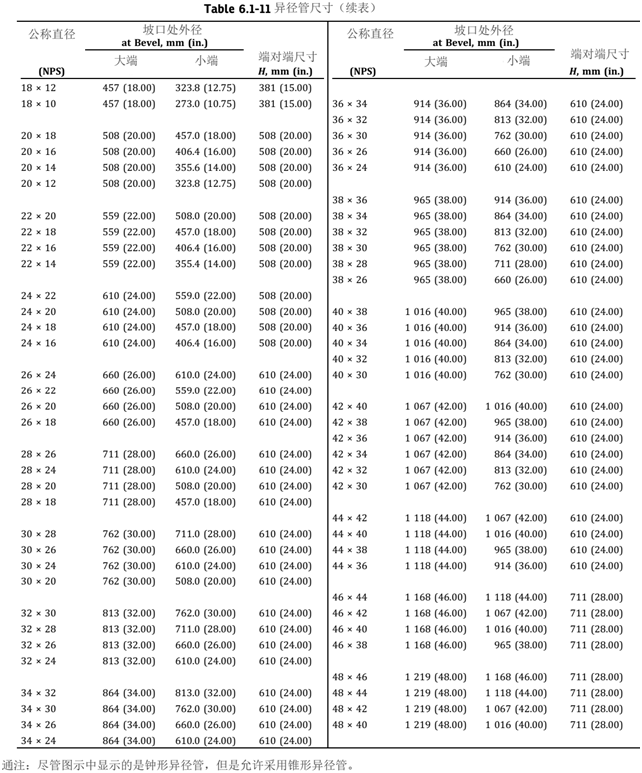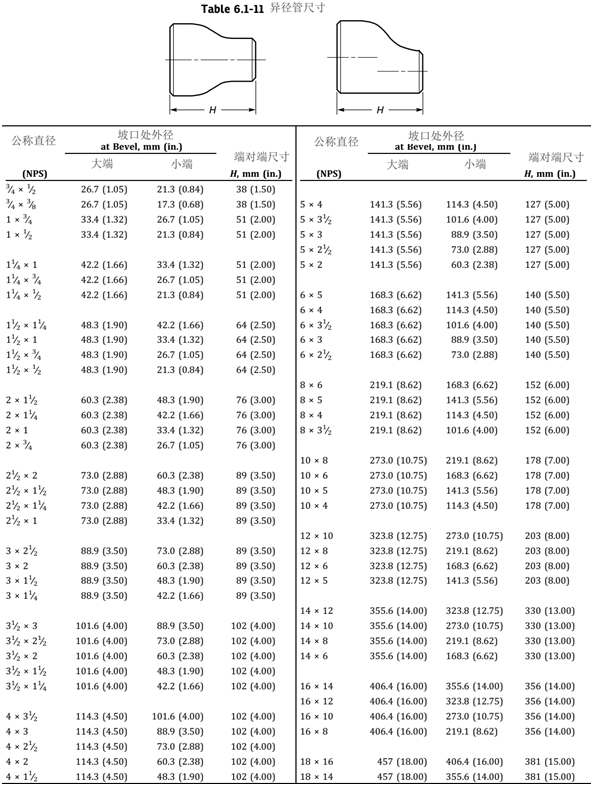 ASME B16.9-2018 異徑管、大小頭、變徑管尺寸表