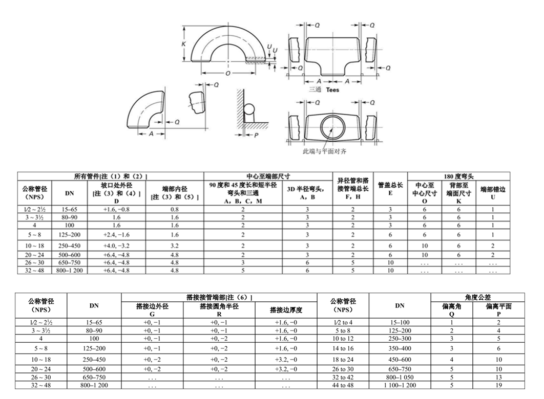 Short radius, long radius, reducing long radius, or 3D radius elbow 短半徑彎頭,長半徑彎頭或 3 倍彎曲半徑彎頭 |
