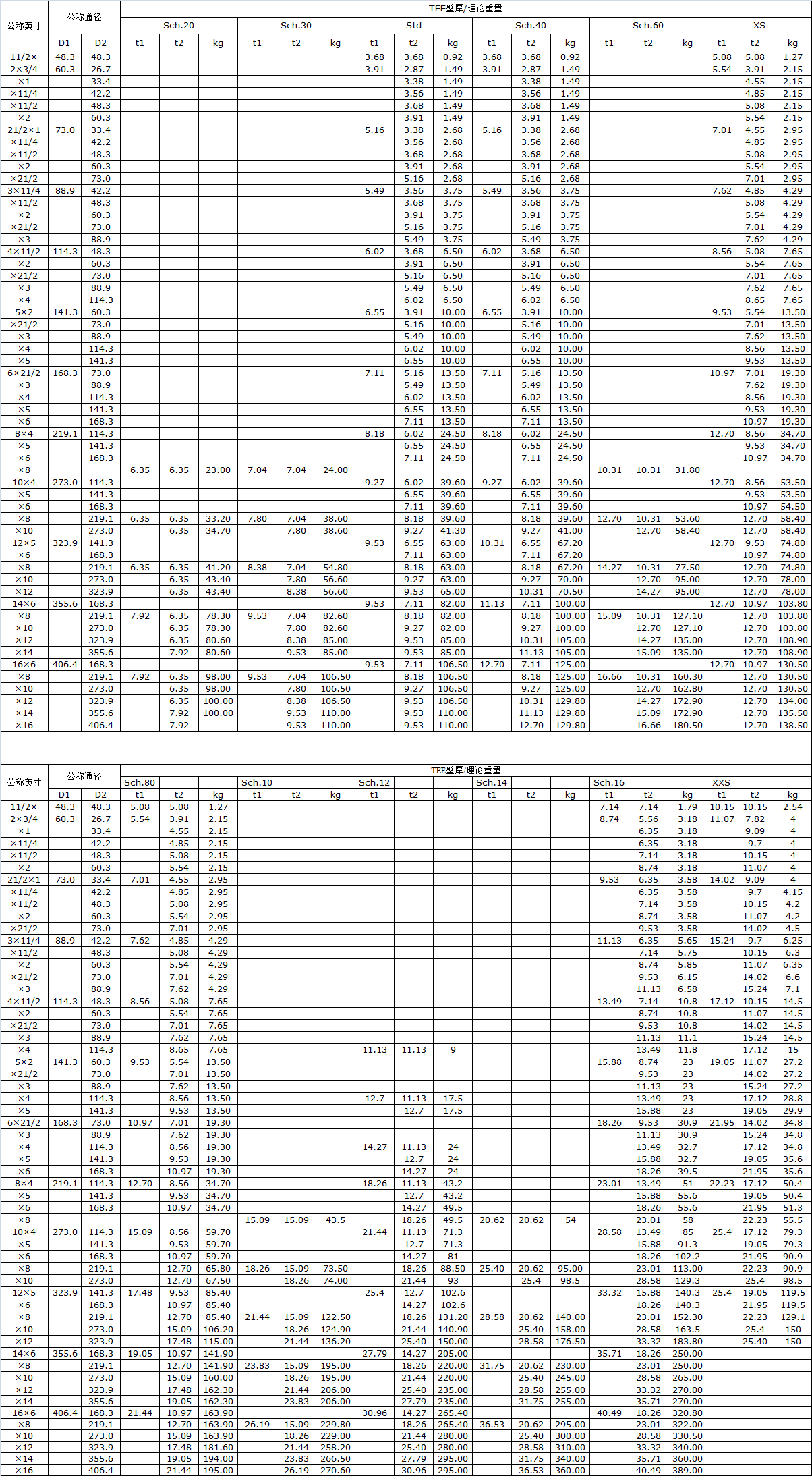 美標三通壁厚和理論重量-TEE羞羞网站免费观看廠家標注