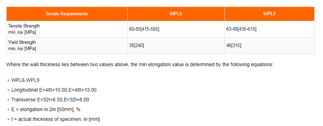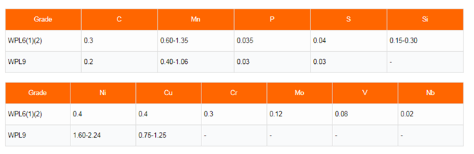ASTM A420 / A420M-07低溫用鍛碳鋼和合金鋼管道配件的標準規範。 WPL6是歸一化碳素鋼,已在-50華氏度下進行了夏比衝擊試驗,可用於低溫環境。另請參見ASTM A333 1級和6級(用於管道)和A350 LF2法蘭。
