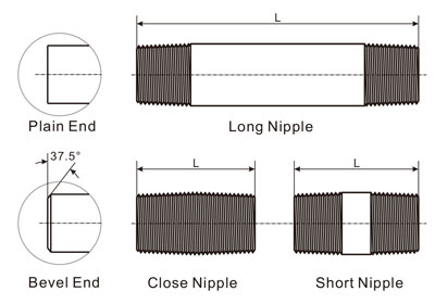 | Close Nipple | Short Nipple | Long Nipple | Sch40/STD | Sch80/XS | Sch160 | XXS | |