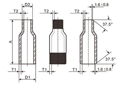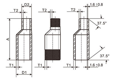 (2) Wall Thickness:T1 & T2 in accordance with ASME B36.10M