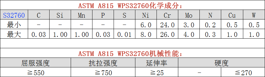 ASTM A815/A815M WPS32760化學及機械性能分析: