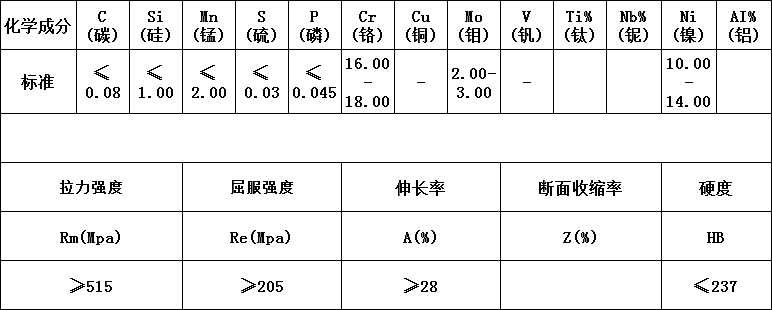 ASTM A403/403M GR.WP316化學及性能: